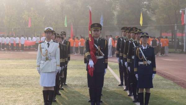 在激昂的乐曲声中,国旗护卫队精神抖擞,迈着整齐矫健的步伐,托举鲜艳的五星红旗,昂首阔步通过主席台。紧随其后的校旗队、鲜花队、彩旗队、各学部方阵依次经过主席台,他们意气风发、斗志昂扬,充分展现出我校学子的青春活力。
