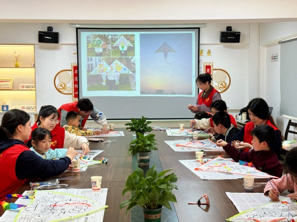 文化讲堂上,志愿者通过精心制作的多媒体课件,以生动有趣的方式向孩子们系统讲解了中国风筝两千多年的发展历史。课件详细展示了从春秋时期鲁班“制木鸢以窥宋城”的传说,到唐宋时期风筝技艺的成熟,再到明清时期风筝文化的繁荣,让孩子们在历史长河中感受这项非遗技艺的独特魅力。志愿者还特别介绍了传统风筝扎制技艺中的“扎、糊、绘、放”四艺,以及南北风筝的不同艺术特色。