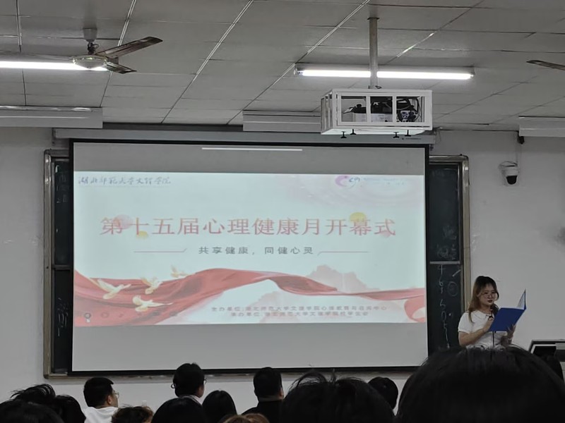 启动仪式分为四项流程:视频回顾第十四届心理健康月活动,心理中心主任陈庆老师介绍第十五届心理健康教育月方案,学工部副部长陈小龙致辞,心理中心曾程老师进行心理委员系列讲座第一讲。10月10日晚上19:00,伴随着第十五届心理健康教育月回顾视频的播放,本次心理健康月开幕式逐渐拉开帷幕。视频结束后,心理中心陈庆主任介绍了活动方案。本次心理健康月持续两个月,本次活动主题为“共建共治共享,同心健心安心”,活动构成为校级活动与部级活动,有主题开放日、心理普查项目等活动,尤其是心理委员系列培训,以及8个学部举办的特色活动。随后学工部副部长陈小龙致辞,提出两点希望:做好人生规划,把准成才方向;做好心理委员工作,通过心理班会、谈心谈话等,在工作中磨砺心智,增长才干。伴随学工部副部长陈小龙的宣布,标志着第十五届心理健康月系列活动正式开幕。