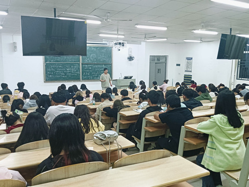 讲座开始前,曾老师强调身为心理委员,在日常生活中观察周围同学的重要性,并带领同学们一起进行两次观察练习。他分别邀请了两组同学上台即兴表演,曾老师从语言、行为、情绪、面部表情等方面,分析小动作下的潜意识,引导各位同学如何判断周围同学是否有异常。随后便正式进入今天的主题:“大学常见心理问题解答”。首先,曾老师邀请同学们在黑板上写下自己在进入大学生活后遇到的问题,同学们纷纷踊跃参加。曾老师根据黑板上同学们所写的日常生活中出现的问题进行一一解答,比如:当班级里有两位同学闹矛盾了,该如何处理;如何适应大学新环境;怎样和同学相处等等。曾老师从多方面向同学们提供了解决思路,为心理委员提供了一系列常见心理问题的应对方法,使其能在班级内部出现问题的时候能采取有效的应对方式,去更好的处理班级中出现的各种问题。