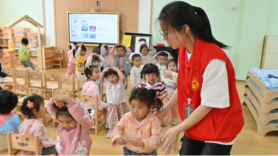 揭牌仪式结束后,我校一行参观了西塞山区第三幼儿园,并洽谈后续合作事宜。在幼儿园,学校志愿者结合5•12防灾减灾宣传周,与滨湖社区、牧羊湖派出所一同开展消防应急演练和5·12地震逃生演练,帮助培养幼儿的自我保护意识和团结互助的品德。