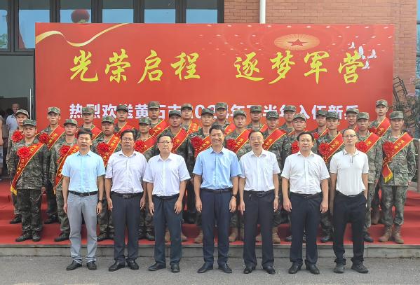 本网讯(图 杨辉 凌玉珍 黄依娜 侯佳妤 朱家慧 文 翁典典 侯阳阳)9月14日上午,“黄石男儿,红色新兵”黄石市2024年下半年新兵出征仪式在我校学术交流中心举行。此次活动由黄石市人民政府征兵办公室主办,我校协办。市征兵领导小组常务副组长、市政府常务副市长刘润长,市征兵领导小组副组长、军分区司令员贾宇峰,市征兵办副主任、市政府副秘书长王细军,市征兵办副主任、军分区动员处处长王震,县市区人武部负责人,在黄高校相关负责人,我校校长李开灿,常务副校长杨学斌,党委书记杨邓红,党委副书记杨之毛及相关部门负责同志出席出征仪式。出征仪式由王震主持。