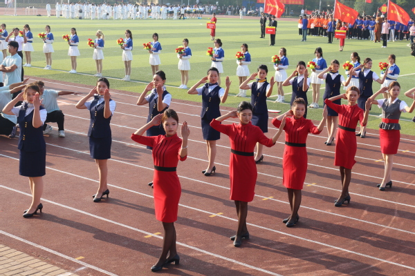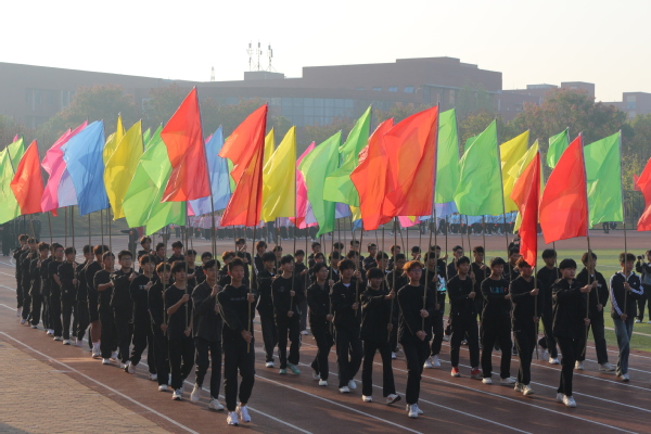 踏着青春的步伐,伴着激昂的旋律,入场仪式正式开始。国旗方阵、校旗方阵、花束方阵、彩旗方阵和各学部(学院)方阵依次走过主席台。他们朝气蓬勃、意气风发,充满着青春的激情;他们的口号热情洋溢、铿锵有力,洋溢着青春的自信。在展示环节,他们以自己的才艺,显示着绚丽的文化和多彩的生活。随后,进行了升国旗仪式。