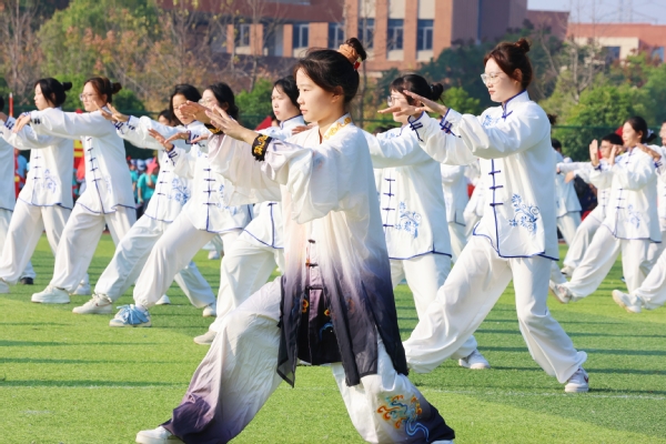 精彩的体育表演把开幕式的气氛推向了高潮。太极拳如行云流水,刚柔并济展现东方神韵;啦啦操似灵动彩蝶,活力四射尽显青春风采,为现场观众带来了一场别开生面的视觉盛宴。
