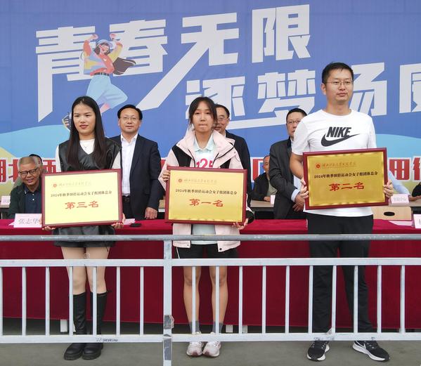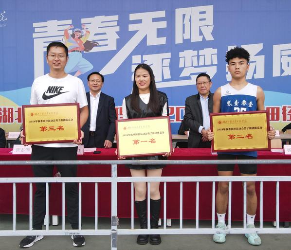 副校长张志华首先宣布了“体育道德风尚奖”和“优秀组织奖”得主,其中经济管理学部、理工学部、优能东风悦享汽车产业学院以及腾讯云大数据产业学院荣获“体育道德风尚奖”;迪科金融产业学院、教育与艺术学部以及人文学部荣获“优秀组织奖”。总裁判长何天畅宣布比赛成绩,迪科金融产业学院、翔宇航空产业学院以及人文学部分别斩获女子团体第一名、第二名、第三名;翔宇航空产业学院、人文学部以及迪科金融产业学院分别斩获男子团体第一名、第二名、第三名;翔宇航空产业学院、迪科金融产业学院、人文学部、东风悦享汽车产业学院、理工学部分别获得了团体总分的第一名、第二名、第三名、第四名和第五名。全体校领导为获奖集体颁奖。