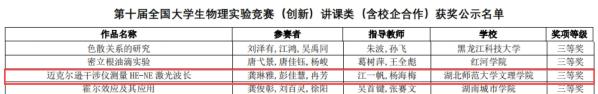 本网讯(通讯员 江一帆)11月29日,第十届全国大学生物理实验竞赛(创新)决赛圆满落幕,我校学子荣获一项二等奖,两项三等奖。