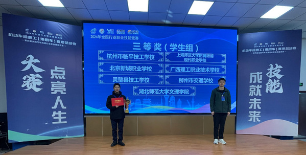 本网讯(通讯员 谭姣)12月1日上午,2024年全国行业职业技能竞赛——第四届全国汽车流通行业职业技能竞赛机动车检测工(乘用车)赛项总决赛在许昌科技学校圆满落幕。我校新能源汽车产业学院新能源汽车技术专业2204班黄灿同学荣获学生组国赛三等奖。