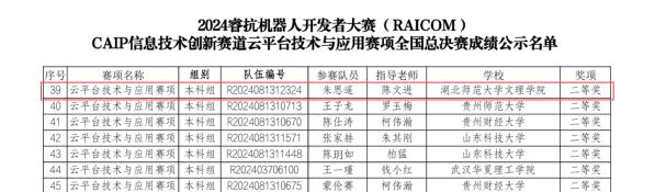 本网讯(通讯员 杨海梅)12月22日,2024睿抗机器人开发者大赛—CAIP信息技术创新赛道云平台技术与应用赛项的全国总决赛在山东省青岛幼儿高等师范专科学校落下帷幕,经过四个小时紧张激烈的角逐,我校学子荣获本科组二等奖1项、高职组二等奖1项。