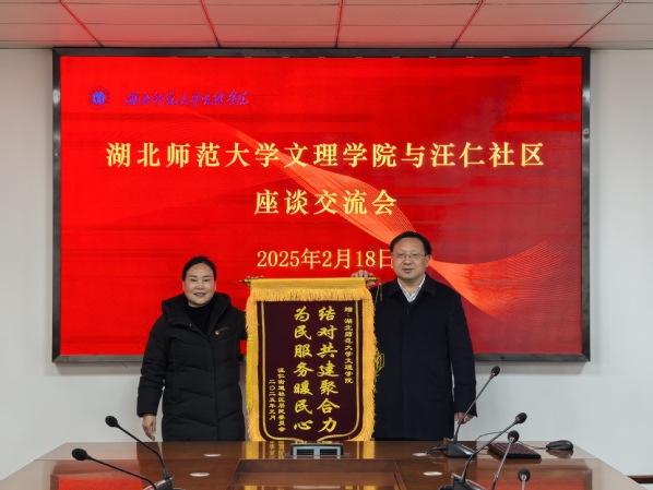 本网讯 2月18日,汪仁社区党委书记罗素珍一行来我校赠送锦旗,“结对共建聚合力,为民服务暖民心”是对我校社会服务理念的高度肯定。校党委书记杨邓红出席赠旗仪式并代表学校接受锦旗。