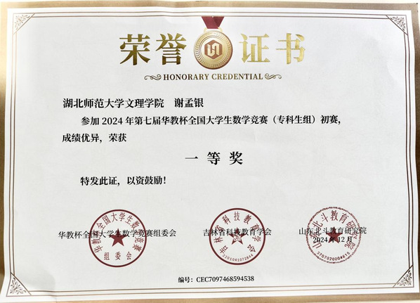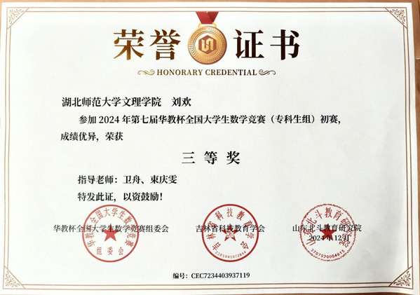本网讯(通讯员 谭姣)近日,2024年第七届华教杯全国大学生数学竞赛初赛成绩揭晓,我校优能东风悦享新能源汽车产业学院学子凭借扎实的数学功底和出色的临场发挥分别荣获专科生组一等奖和三等奖。