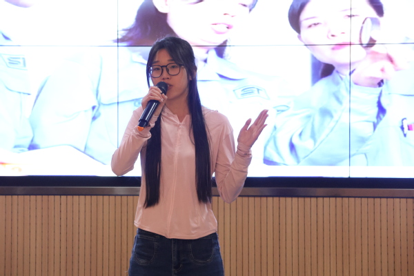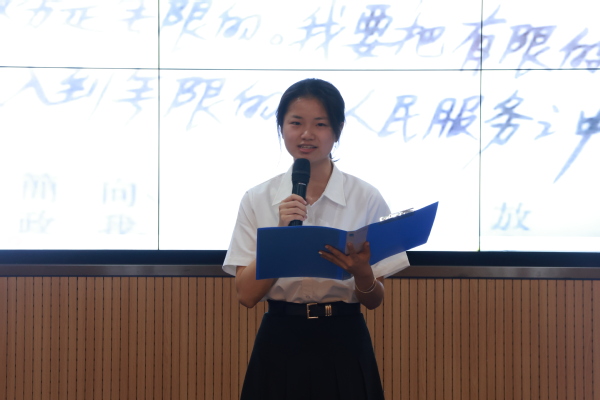 B组选手吴烨讲述着身边的“雷锋精神”践行者,号召同学们挺膺担当,用行动续写雷锋故事;孙芳华介绍了我校“只郢有爱”支教团队和雷锋月公益集市的实践故事,雷锋精神具象化地呈现在观众面前;田玉兰以自己的故事为蓝本,讲述懵懂“顽石”在学姐的引路下被“点燃”的成长蜕变