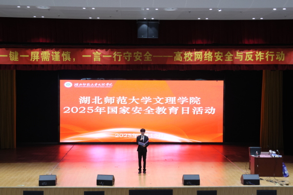本网讯 (图 邢博文 刘泓江 文 涂亦乐)4月15日,在第十个全民国家安全教育日来临之际,我校联合黄石市公安局、开发区·铁山区分局在学术交流中心报告厅联合开展“国家安全进校园”主题宣传活动。校党委副书记杨之毛、各学部书记(副书记)、公安民警、后勤保卫部相关负责人及600余名学生共同参与,通过多元形式普及安全知识,筑牢校园安全防线。