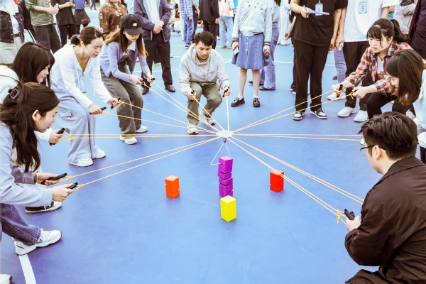 在“凝心铸魂”比赛中,参赛教师齐心协力,利用吊绳精准垒放积木,顺利完成挑战。该项目不仅考验体力,更注重团队的平衡能力与默契配合。随后的“携手共进”比赛中,教师们沉着冷静、耐心协作,凭借出色的团队表现成功完成任务。最后的拔河比赛将现场氛围推向高潮,我校教师科学安排站位,灵活调整战术,心往一处想、劲往一处使,充分展现了“拔”出精彩、“河”作共赢的团队精神。