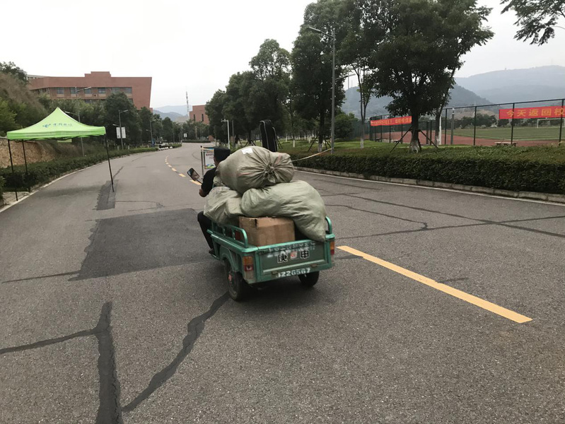 6月12日至20日,马博在线登录2020届毕业生陆续返回校园办理毕业手续。有的同学犯了愁:辛辛苦苦收拾了几大包行李,从宿舍搬到几百米外的学校门口,对女孩子来说,确实相当有难度。虽然校园巡逻车可以帮忙,可是汽车内部空间不大,有时还需要跑两三趟。