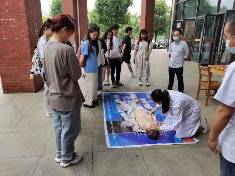 培训前,汪仁卫生院医护人员为师生们测量血压,向参训人员发放宣传手册,讲解人体生命急救的相关知识,进行了心肺复苏操作示范,最后组织参训人员一对一的进行了心肺复苏操作训练。