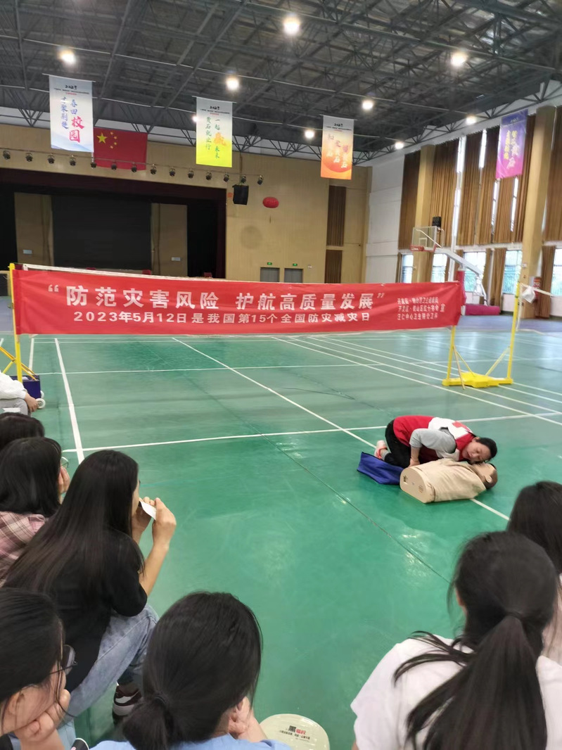 (通讯员严骅)为贯彻落实省卫健委《关于做好 2023 年自然灾害和事故灾难紧急医学救援工作的通知》的文件精神,进一步宣传普及防灾减灾、自救互救卫生应急知识,增强广大师生的灾害风险防范意识,提高自救互救能力。5月9日下午,我校邀请开发区﹒铁山区卫健局及汪仁中心卫生院医护人员来校,开展了心肺复苏技能培训。100余名师生代表参加培训。