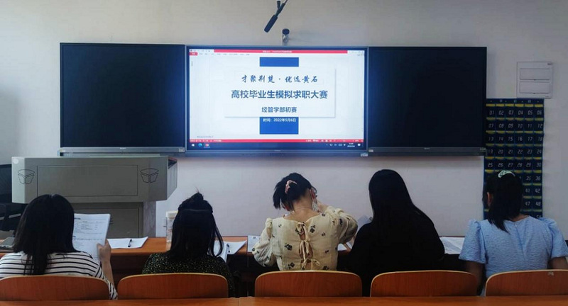 为了让同学们更好地了解就业流程,增强大学生的应聘能力与心理素质,响应“才聚荆楚·优选黄石”高校毕业生来黄留黄就业的号召,5月6日下午15:00,经管学部在2号实验楼407举办了大学生模拟求职大赛初赛,学部共有七名选手参加。此次比赛也邀请了经管学部专任教师陈媛、张甜,教学秘书曾雨蓓,以及辅导员吕彩云作为此次比赛的评委老师。