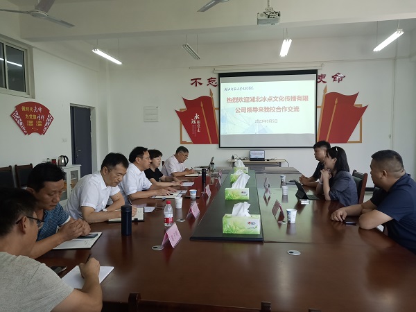 9月8日下午,湖北冰点文化传播有限公司总经理董俊、严昌、兰清一行3人来我校考察交流,洽谈关于校企合作的事宜。校党委书记杨邓红以及经济与管理学部主任商树松、专业负责人葛子明、专任教师聂亚珍、张锐出席了接待活动。