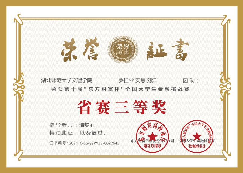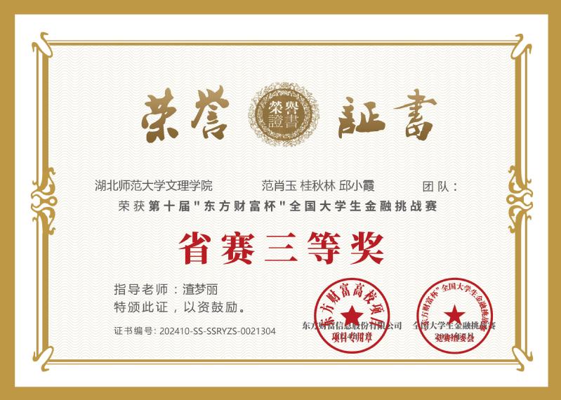 8月2日,第十届“东方财富杯”全国大学生金融挑战赛落下帷幕,我校经济与管理学部学生最终荣获省级二等奖五项,省级三等奖五项。
