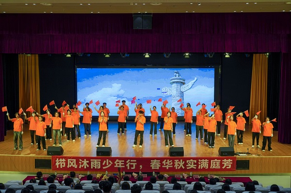 见面会现场气氛热烈,学生合唱团深情演唱了《我和我的祖国》、《如愿》,歌声真挚动人,表达了对祖国的深情与敬意。