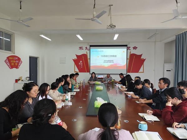 10月10日下午,经济与管理学部在2号实验楼二楼会议室召开了10月份工作例会。学部全体教职工参加,会议由党总支副书记罗铭主持。