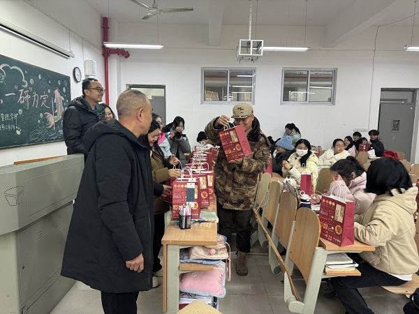 活动现场,学部精心策划,为每位考研学子准备了一份满载祝福的“考研暖心包”:橙子寓意心想事“橙”,一战“橙”硕;薯愿寓意“薯”你最棒,如你所“愿”;士力架寓意“巧克”难题,能量满满;签字笔则寓意“以笔为剑,乘风破浪”。每份礼包上都张贴着老师们亲手书写的考研“祝福贴”,极大地彰显了学部的人文关怀。