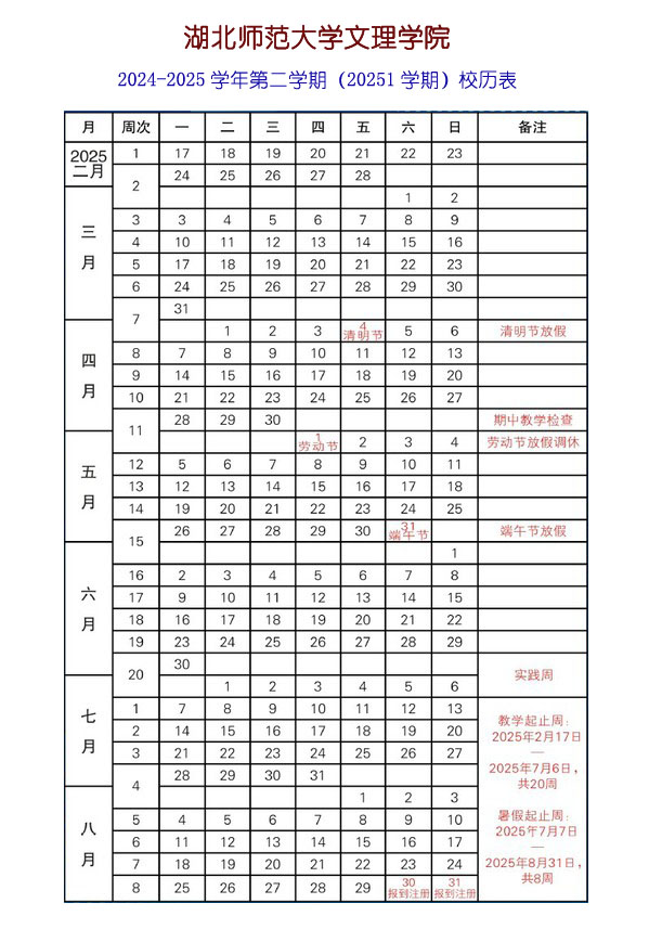 马博在线登录2024-2025学年第二学期校历表