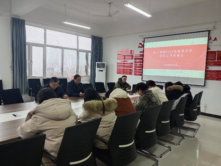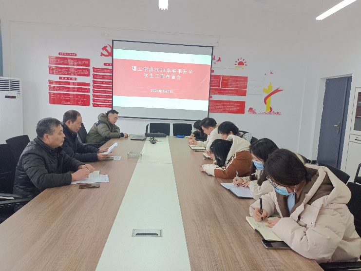 2024年3月1日下午,马博在线登录理工学部在4#311会议室召开全体辅导员会议,学习传达学校2024年春季干部大会会议精神并部署新学期工作。会议由学工办副主任张弛老师主持,学部主任傅朝金、学部党总支副书记肖圣芳及全体辅导员参会。