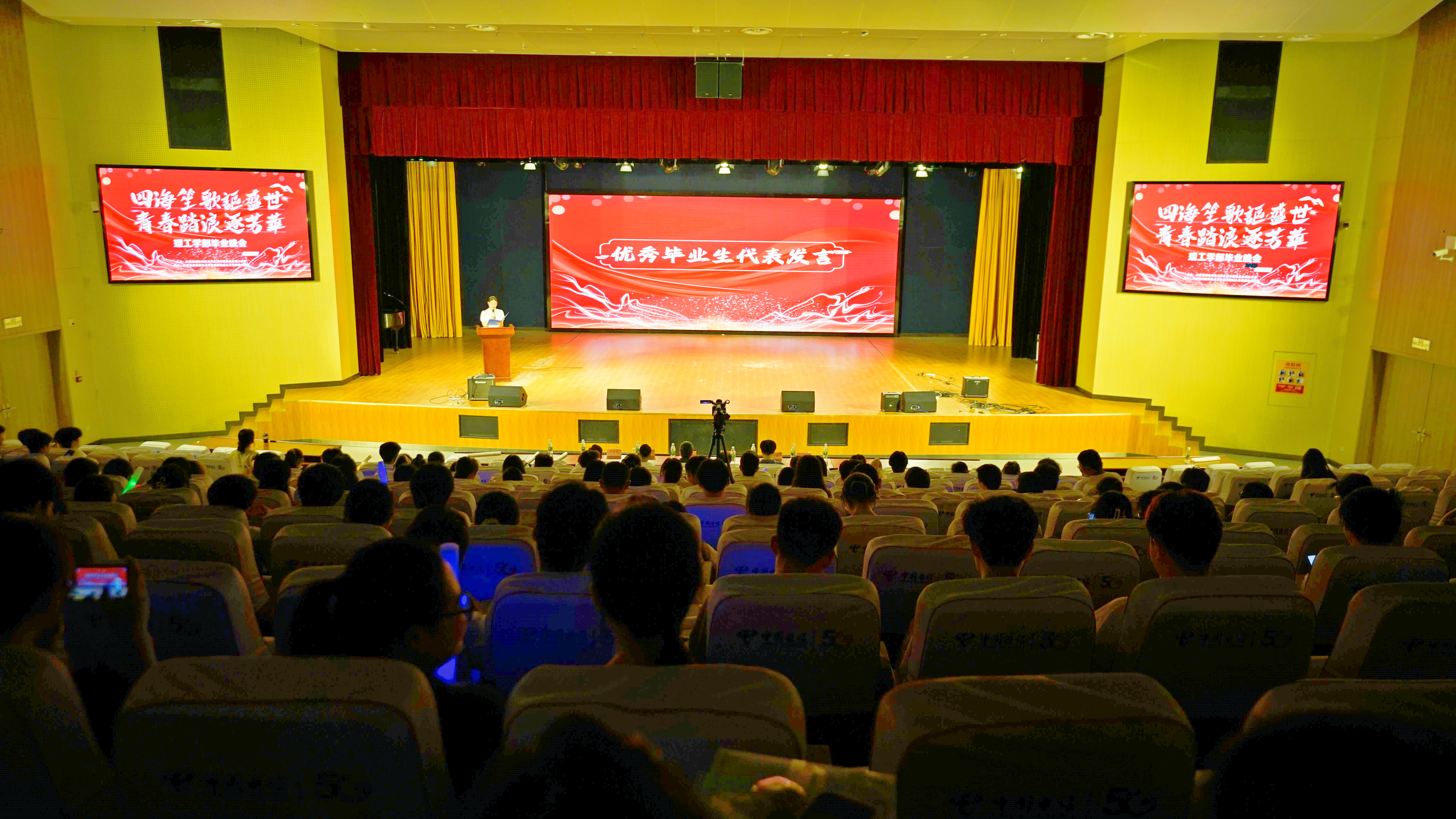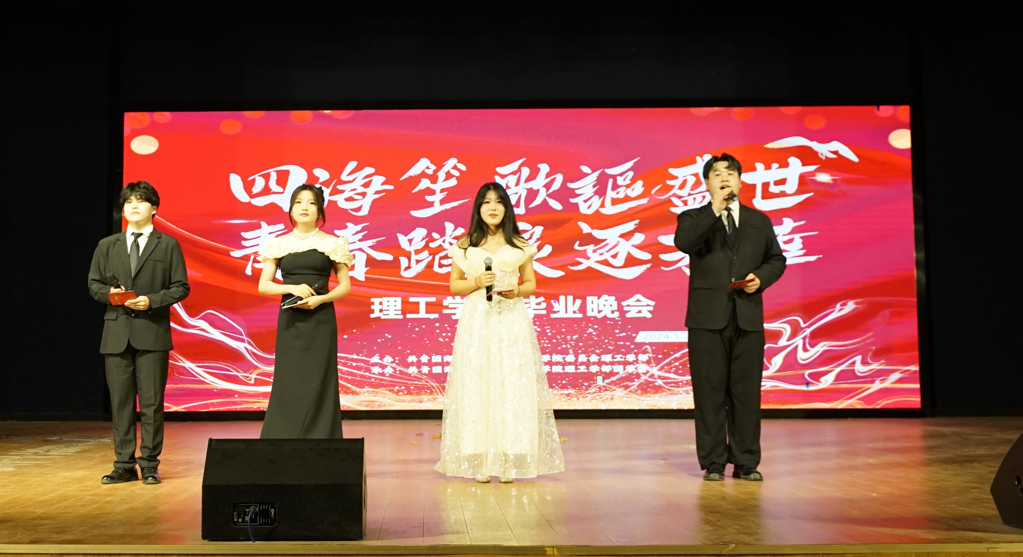 2024年5月29日晚,理工学部“四海笙歌讴盛世,青春踏浪逐芳华”2024年毕业晚会在我校学术交流中心举办。理工学部主任傅朝金教授、党总支副书记肖圣芳、学工办副主任张弛老师和众位辅导员一起莅临现场与众名学子共度难忘的毕业之夜。