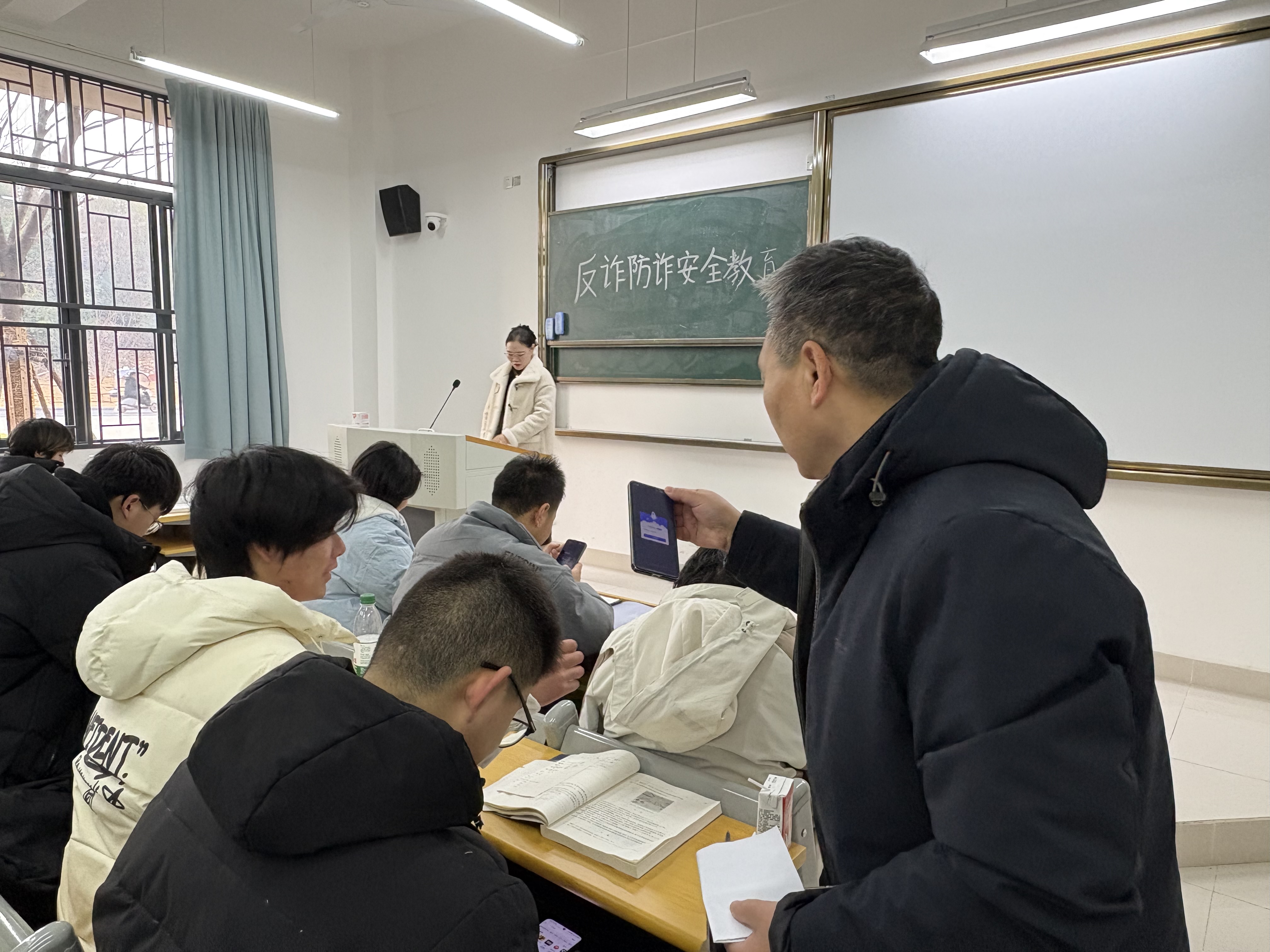 2025年2月26日早上7点50分,学部党总支副书记肖圣芳走进电气工程专业课堂,利用课前十分钟开展“反诈防诈 守护平安”主题宣讲活动,带头引领学学部安全教育工作走深走实。肖书记结合近期高校典型案例,深入剖析“刷单返利”“虚假购物”“AI换脸诈骗”等新型诈骗手段,揭示了诈骗分子话术套路。他强调:“反诈防诈不仅是个人安全的必修课,更是新时代青年理性运用网络、守护社会责任的体现”。肖书记还现场抽查学生“国家反诈中心APP”下载情况,叮嘱大家“不轻信、不转账、不泄露”,筑牢思想防线。此次肖书记带头宣讲,进一步强化了“全员参与、全程渗透”的反诈教育格局,为辅导员老师进入课前十分钟进行宣讲作出了示范,也为学生利用课前十分钟自主开展安全教育活动树立了鲜活的榜样。