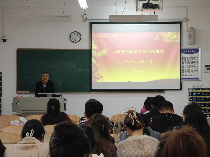 会上,周青山主任首先对本学期“形势与政策”课的具体教学安排作了介绍。随后,他对本学期的教学专题进行了详细说明,强调了各专题的教学重点和难点,并分享了自己的授课思路和教学经验。最后,他指出:任课教师应当加强政治理论学习,深入领会党的二十届三中全会精神,切实按照统一的课件和授课内容,充分发挥自身的优势和专长,保质保量完成好本学期“形势与政策”课授课任务。