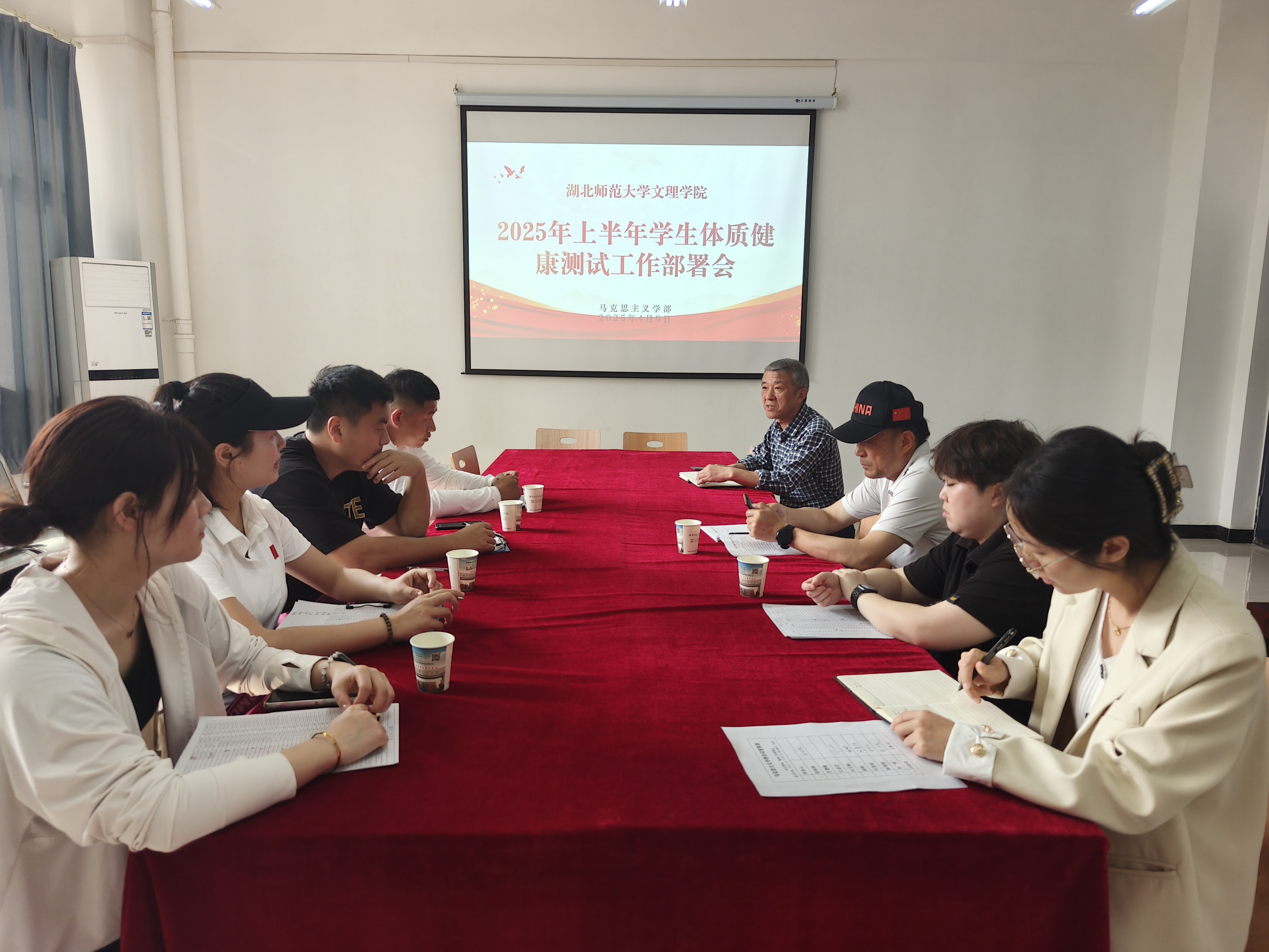 202549午,马克思主义学部在3号实验楼208会议室召开学生体质健康测试工作部署会负责体测工作的相关体育老师参加学部主任周青山主持会议
