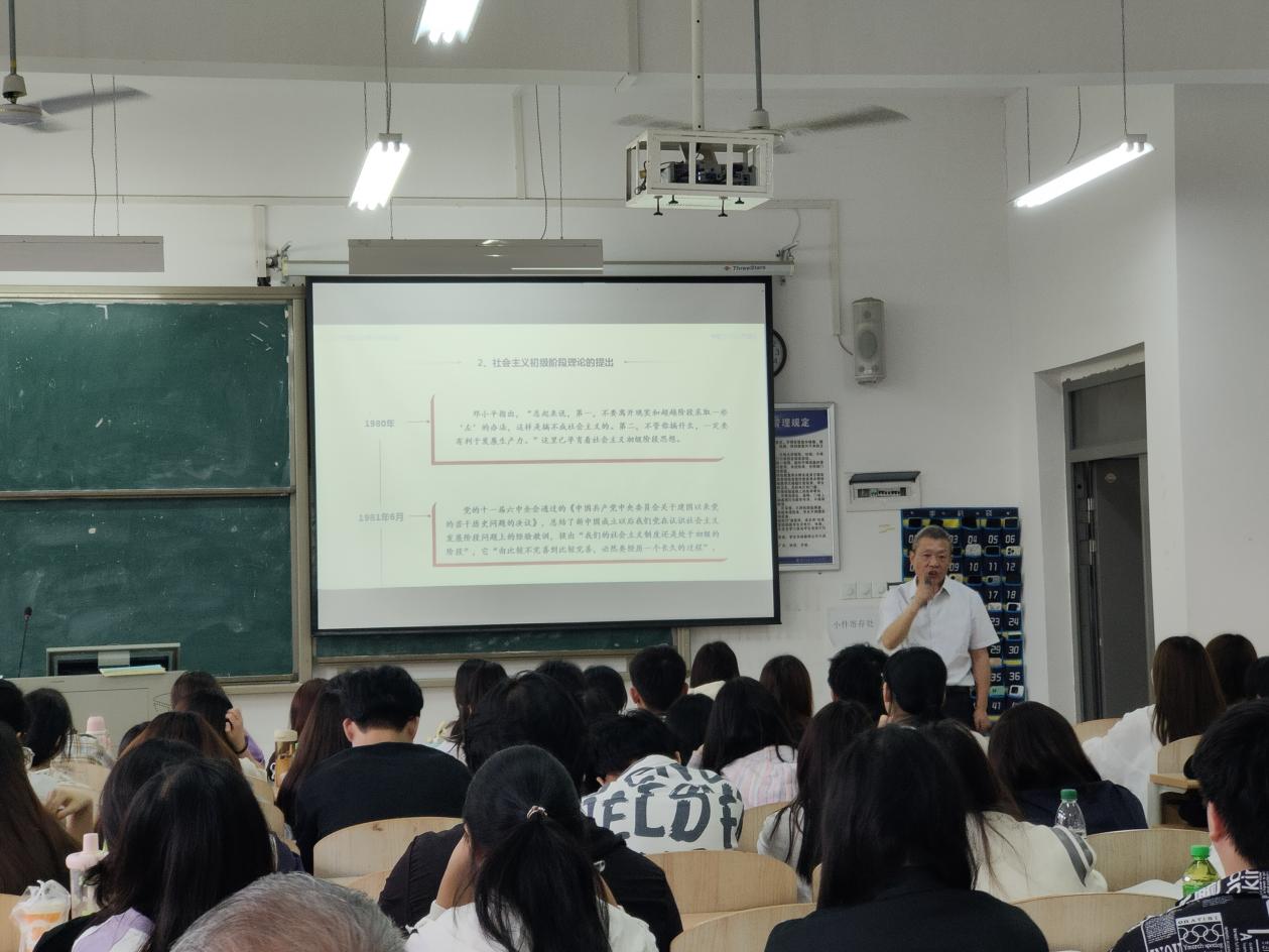 郭老师呈现了题为《邓小平理论的主要内容》的教学示范展示,他运用丰富的案例、详实的数据和清晰的逻辑结构,围绕社会主义初级阶段理论等知识点展开讲解,并使学生深入领会了党在社会主义初级阶段的基本路线。课堂上,郭老师注重启发式教学,善于理论结合实际,充分调动学生学习积极性,展现了深厚的教学功底和高超的课堂驾驭能力。课程结束后,在场老师纷纷表示,学有所获,深受启发。