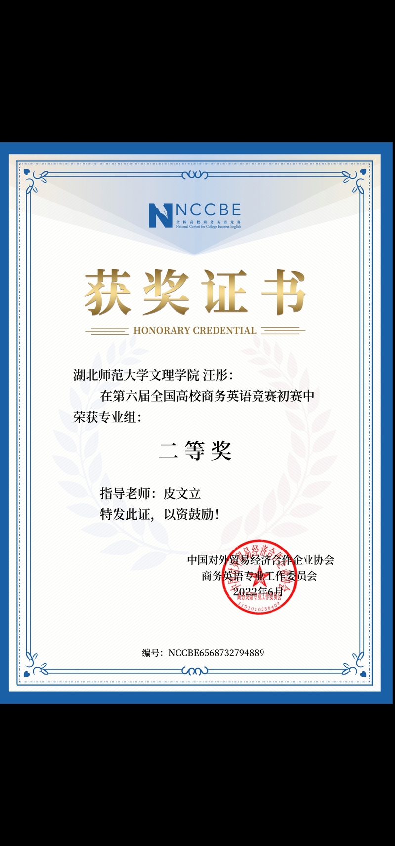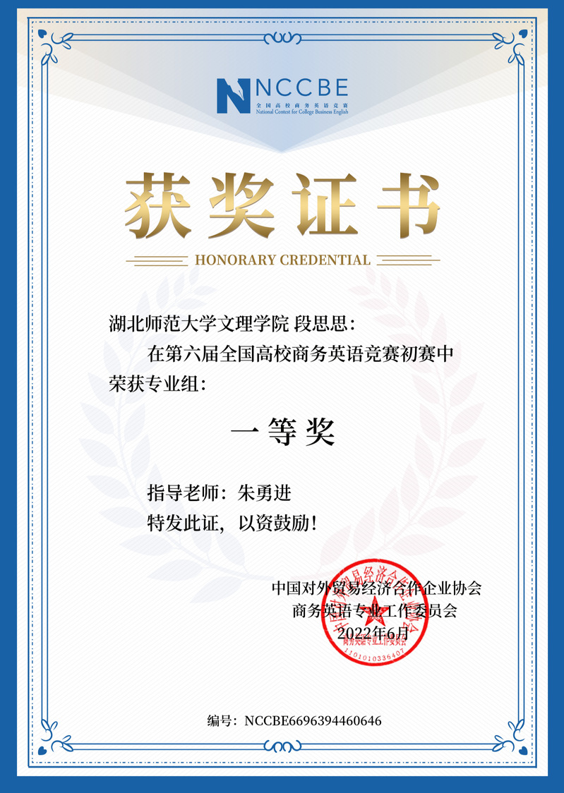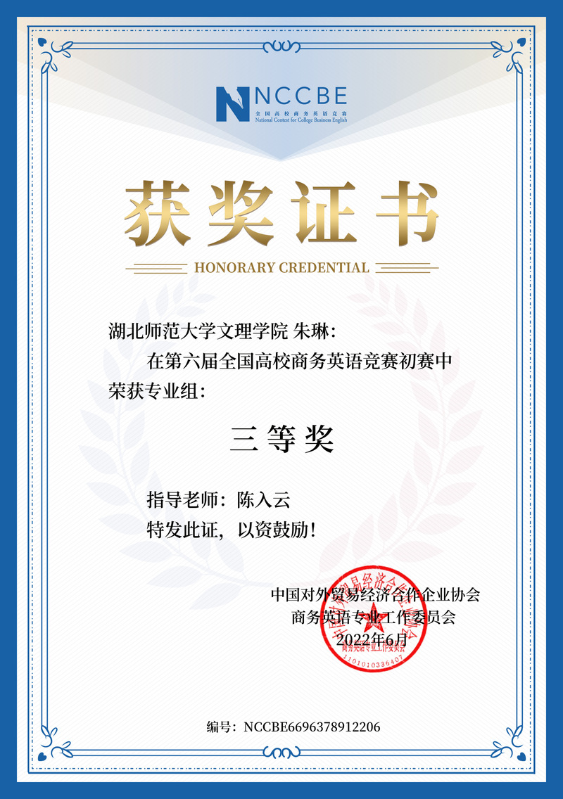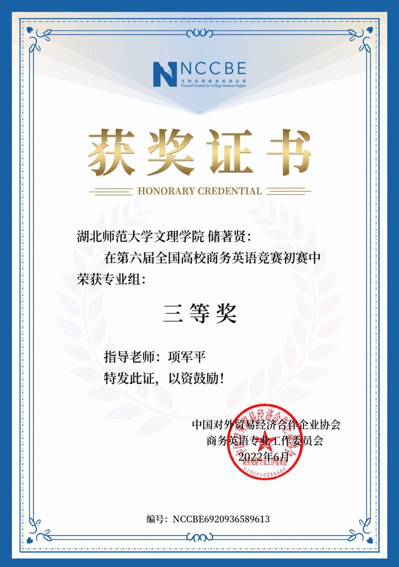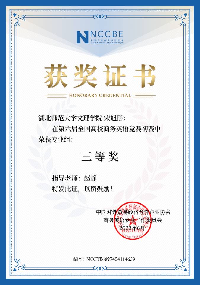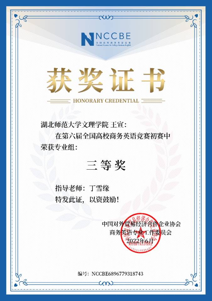 汪彤等6名同学在第六届全国商务英语竞赛中获奖