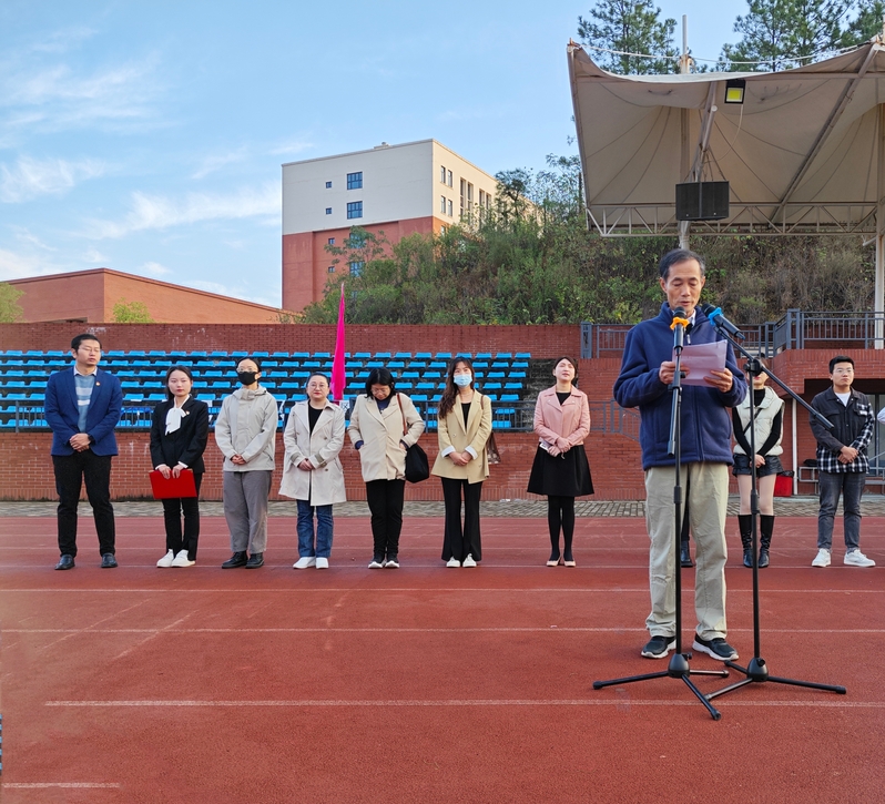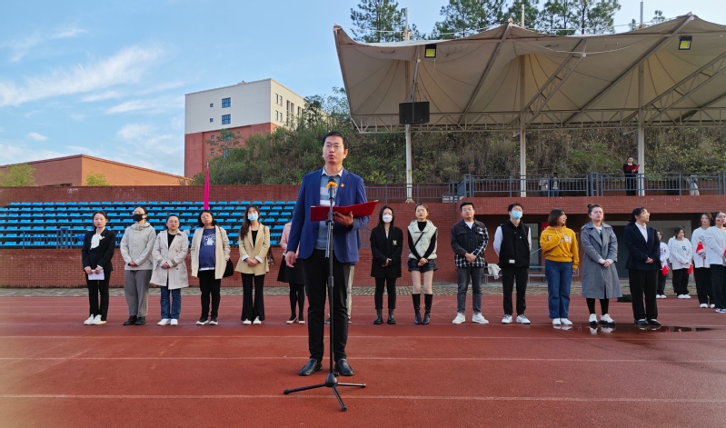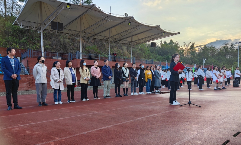 扬雄风,挺傲骨,步履铿锵。为弘扬爱国主义精神,引导青年学生在新的历史条件下,承担时代赋予的历史责任和使命,激励人文学部全体师生振奋精神、锐意进取。我校人文学部于11月6日早上7点在风雨操场举行以“担当民族复兴重任,谱写青春绚丽华章”为主题的升旗仪式,莅临本次升旗仪式的人员有人文学部主任熊子延、人文学部党总支副书记汪玉宝、人文学部团总支副书记胡文玉、学部专任教师代表邓薇薇和袁梦亚老师、人文学部全体辅导员及人文学部行政办、教学办老师。