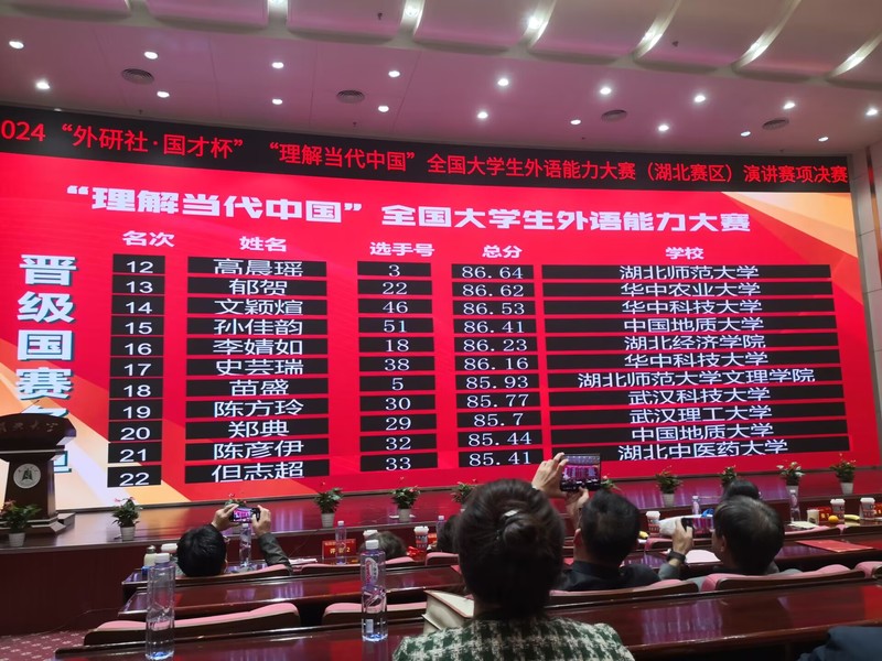 2024年11月9日,我校人文学部邓薇薇老师带队三位选手赴湖北大学参加“外研社-国才杯〈理解当代中国〉演讲比赛省赛”,人文学部英语专业苗盛同学在邓老师、兰铭瑶老师全方位悉心指导和陈杨等老师配合指导下,过五关斩六将,比赛出色发挥,经过首轮即兴演讲激烈PK,从湖北省200多名选手的省赛初赛中脱颖而出,冲进了省赛决赛,这已经是我校该项比赛的历史性突破。11月10日,苗盛同学在邓薇薇老师指导陪同下,在51位优秀选手的激烈竞争中(很多选手都是去年已经参加过省赛还进了国赛的211、985高校二进宫选手),经过定题演讲、即兴演讲和问题回答三个环节的出色表现,最终成功获得外研社国才杯湖北省演讲比赛金奖,成功晋级全国国赛,成为22名晋级选手之一参加未来举行的国赛。苗盛同学是湖北省所有民办高校中唯一晋级国赛的选手,创造了民办高校奇迹!此次比赛是我国演讲比赛最高赛项。另外,商务英语专业詹雄滨同学也发挥出色,获得了省级铜奖。