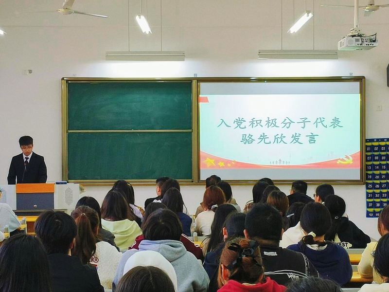 主持人郭旭林在开场中强调:本次培训不仅是理论学习的课堂,更是锤炼党性的熔炉。全体学员要以‘空杯心态’投入学习,用信仰之光照亮成长之路,用实干担当书写青春答卷。汉语言文学2401班骆先欣作为入党积极分子学员代表发言,他以"以党章为镜锤炼党性修养"为主题,结合"人生万事须自为,跬步江山即寥廓的诗句,号召全体学员将理论学习转化为行动自觉,在日常学习生活中发挥模范带头作用,以实际行动向党组织靠拢。
