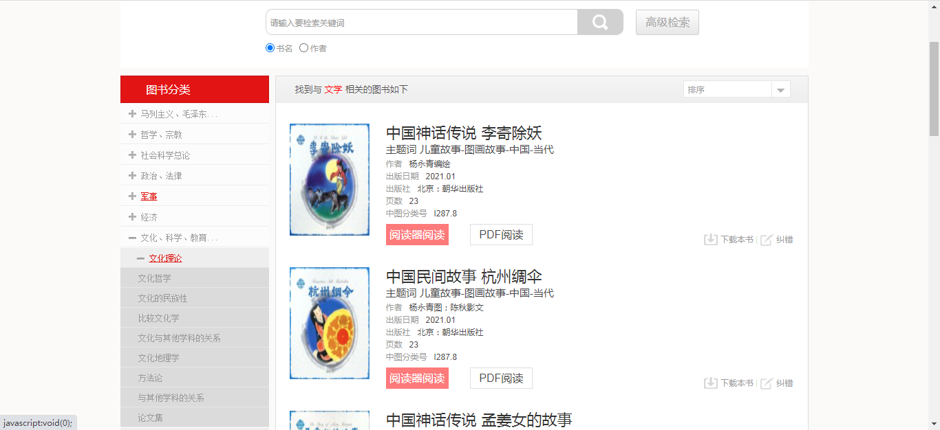 点击“图书分类”,您将通过列表逐级对图书进行浏览。