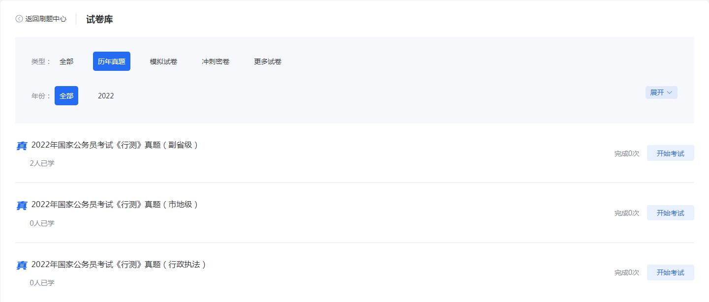 新版本试卷库不再简单罗列平台收录的所有试卷资源,而是在海量资源中为用户提供精品试卷,展示近几年最新最优价值的真题试卷、模拟试卷、冲刺密卷等,帮助用户精准定位考试资源。