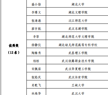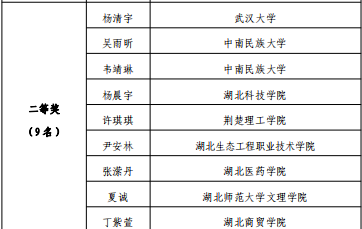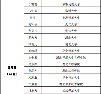 12月23日,团省委、省学联下发了关于“楚风杯”第十六届大学生书画大赛暨第三十五届大学生樱花笔会决赛结果的通知。我校夏诚、徐子惠、李黎分别荣获硬笔组二等奖、软笔组三等奖、绘画组优秀奖。
