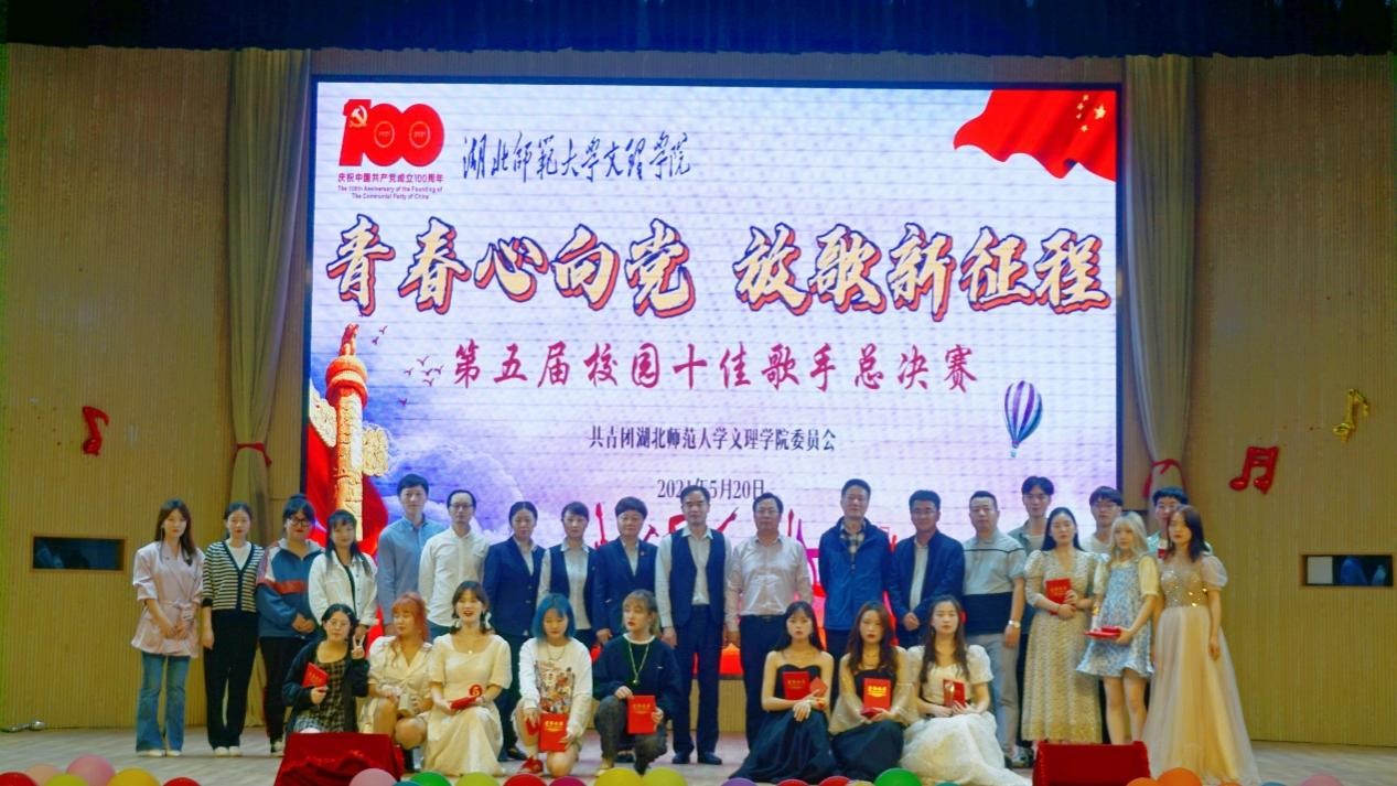 (通讯员:刘萍萍)2021年5月20日晚18:30,我校第五届校园十佳歌手总决赛于风雨操场二楼成功举办。党委副书记杨之毛、各职能部门负责人、学部书记、辅导员老师们莅临本次大赛,主评审由胡蒙等四位老师组成,现场六百余名同学参加。