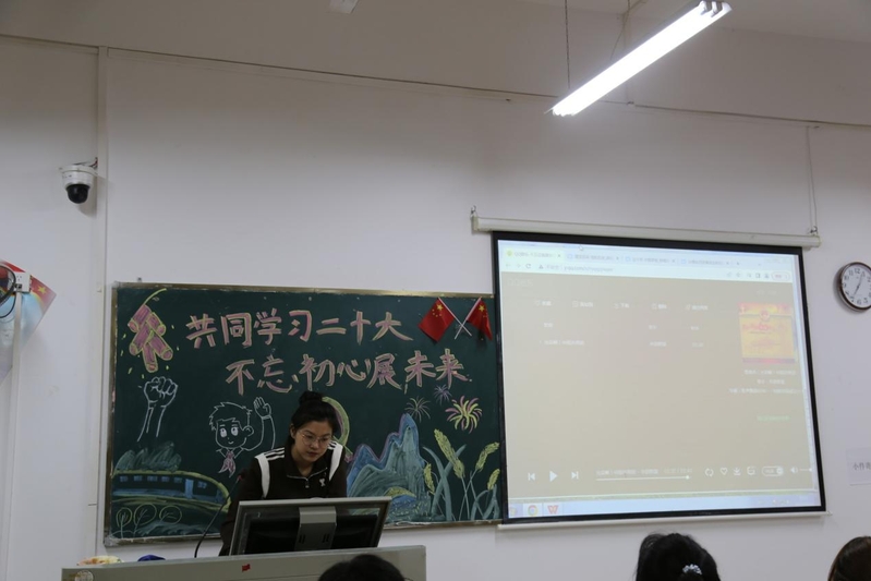 活动在高昂的共青团歌声中拉开序幕。接着,各班团支书带领同学们聆听二十大期间各代表的报告综述,了解大会主题和报告内容,进一步激励我校青年从党的二十大精神中汲取奋进力量,把青春奋斗融入党和人民事业中。最后,同学们通过观看视频短片、互动小游戏等形式,回顾了党领导广大青年在不同历史时期革命、建设、改革的伟大奋斗历程,引领同学们践行初心使命,感悟党领导下的中国青年运动的百年光辉历程。