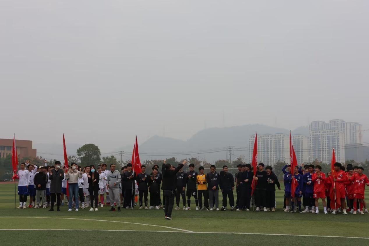 (通讯员:罗绪梅)为深入贯彻国家阳光体育运动精神,推动校园足球的蓬勃发展,11月25日中午,我校于学校足球场举办以“超越从足下起航”为主题的第一届“大力神杯”校园足球联赛活动开幕式。团委书记兼学工部副部长陈荟芸书记、财务部部长万理飞、教育与艺术学部党总支书记李先华、团委指导老师汤可、向品源、经济与管理学部团学指导老师姜希望、公共课部绿茵足球社指导老师江益臣出席了此次开幕仪式。开幕式由赵丹和吴皓主持。