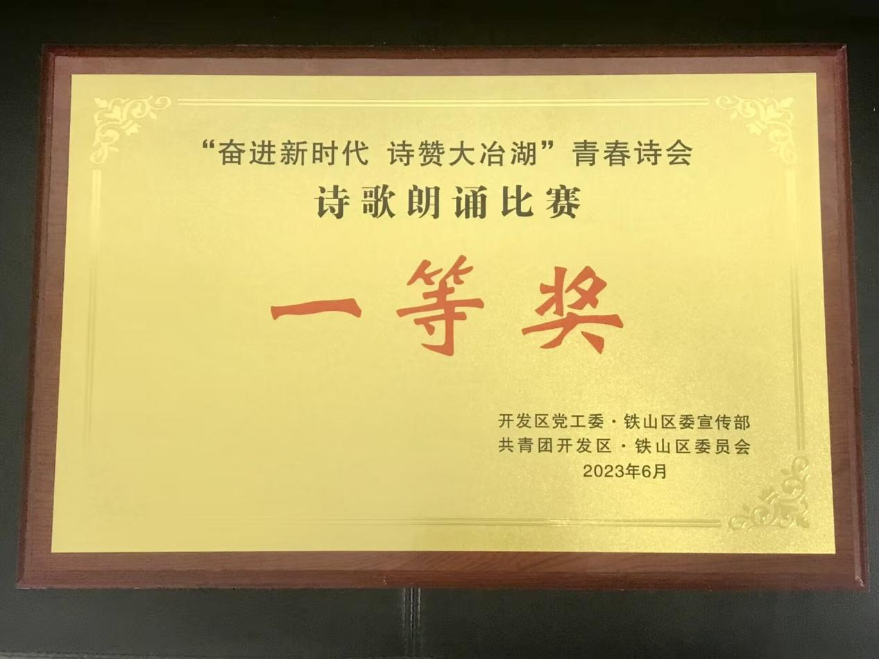 (通讯员:苏祎)青春礼赞,建功时代。6月25日,由开发区党工委·铁山区委、开发区管委会·铁山区政府主办,党工委·区委宣传部、团区委承办的青春诗会朗诵比赛在市展演。在此次活动中,我校参赛作品“青春携诗意,活力漫开铁”诗伴舞和“林茂水美大冶湖”配乐诗分别荣获“一等奖”、“三等奖”。