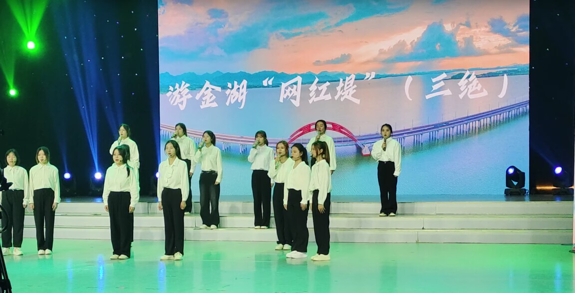 本次大赛以“奋进新时代,诗赞大冶湖”为主题,以展演形式表现诗歌风采并为获奖诗作颁奖。我校参赛队伍将舞蹈、音乐与诗歌完美融合在一起,凭借扎实的文学功底与超强的舞台表现力,从众多优秀作品中脱颖而出,以青春之声表达文理学子的青春礼赞。