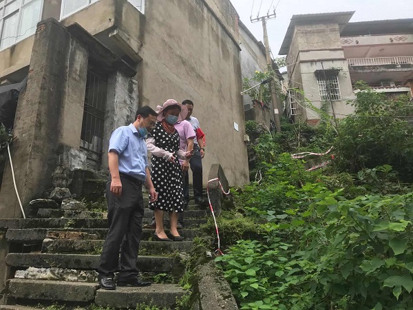 党委书记杨邓红查看陈家湾社区地质灾害现场