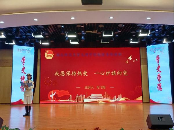 根据新冠疫情常态化防控要求,本次评选活动通过线下宣讲与线上直播相结合的形式进行。其中“百生讲坛”省级活力团支部复赛分两部分,一是支部学“习”成果介绍,我校2019级国旗班团支部主讲人毛飞翔以班训“忠诚正义、爱国荣校”为依托,结合支部特色与亮点,充分展示了支部组织建设、思想建设、活动开展、社会实践等众多方面成果;二是风采展示,通过视频的形式呈现团支部的风貌,视频中2019级国旗班团支部笔直的身影、飒爽的军姿与坚定的步伐尽展新时代文理青年风采。