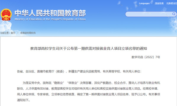 教育部第一期供需对接就业育人项目马博在线登录立项名单