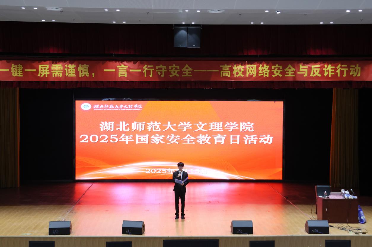 4月15日,在第十个全民国家安全教育日来临之际,我校联合黄石市公安局、开发区·铁山区分局在学术交流中心报告厅联合开展“国家安全进校园”主题宣传活动。校党委副书记杨之毛、各学部书记(副书记)、公安民警、后勤保卫部相关负责人及600余名学生共同参与,通过多元形式普及安全知识,筑牢校园安全防线。