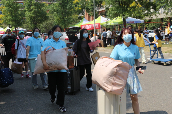 学校会让家长安心吗?986人次的志愿者行动起来了。“你的事,我帮办”,这算是学兄学姐给学弟学妹见面的第一个承诺。从进校门开始,引导到各学部迎新点,再引导学生办理入学手续,热情周到;行李从卸车到装车,转运宿舍,再到卸车入舍,志愿者热火朝天,挥汗如雨。手续,保证一个不少,行李,保证一件不落。暖心的一幕又一幕,在不同的宿舍同样地上演着。事无巨细的全程服务,赢得了新生的赞许,家长的放心。